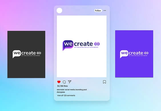 Pagrindinė WeCreate prekės ženklo spalva — drąsi, moderni violetinė, atspindinti inovacijas, kūrybiškumą ir skaitmeninį mąstymą. Ji sujungia mėlynos spalvos patikimumą su raudonos energija, todėl idealiai tinka platformai, kuri įgalina kūrėjus ir jungia juos su šiuolaikiniais prekių ženklais.